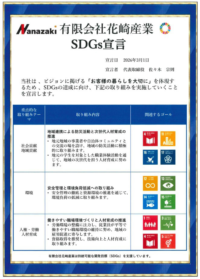 LPガス商慣行是正に向けた自主取組宣言について2025.07.11 05:05有限会社花崎産業はLPガス販売事業者として関係法令を遵守し適正な取引を行いお客様へのサービス及び信頼関係向上を図るため下記取組みを宣言いたします。Ⅰ 過大な営業行為の制限・正常な商慣行を超えた利益供与は行いません。・LPガス事業者の切替えを制限するような条件付き契約締結等は行いま...